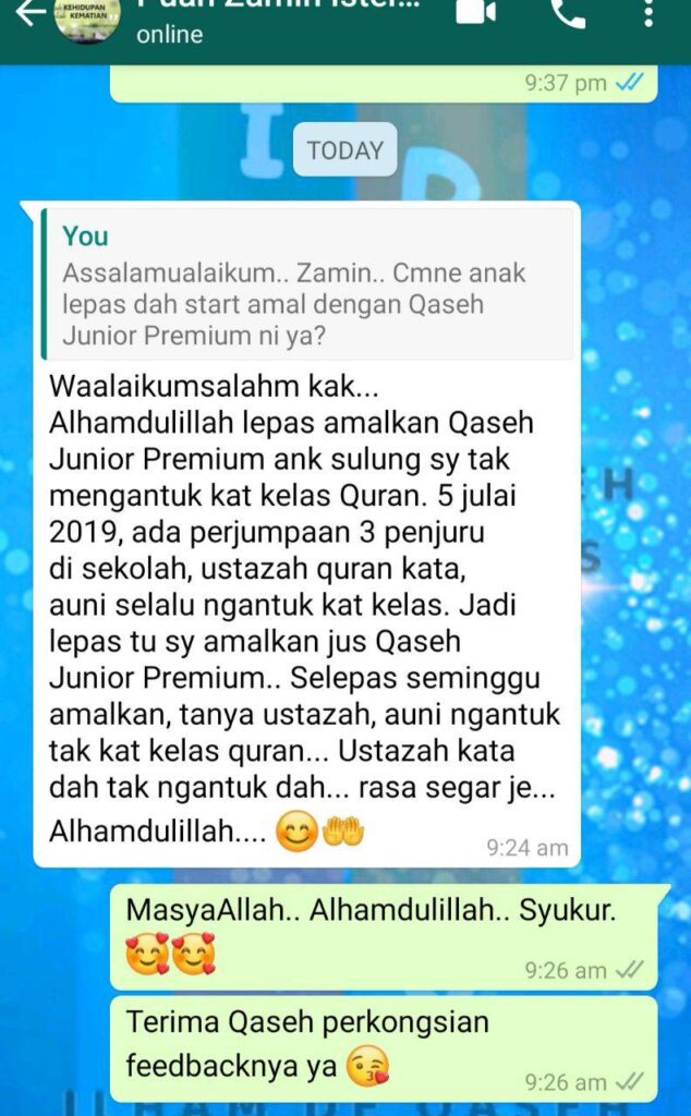 *PENAFIAN: Keberkesanan produk ini bergantung kepada kesesuaian individu. Setiap hasil dari penggunaan adalah berbeza bagi setiap individu. Produk ini akan memberi kesan terbaik sekiranya pengguna mengamalkan dengan cara betul berdasarkan banyak testimoni yang diperolehi. Kita berikhtiar, tuhan yang menyembuhkan.